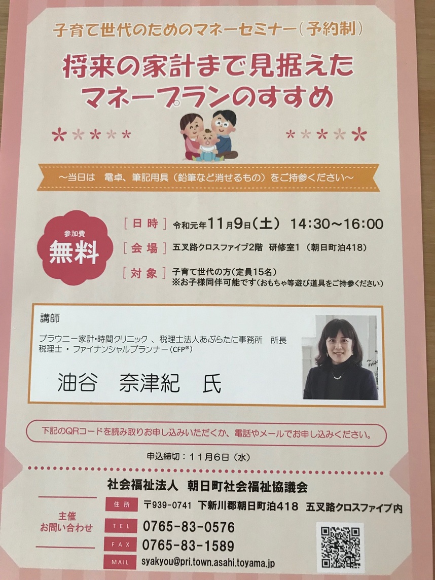残席がまたあるようです。お問い合わせは朝日町社会福祉協議会さんまでお願い致します。