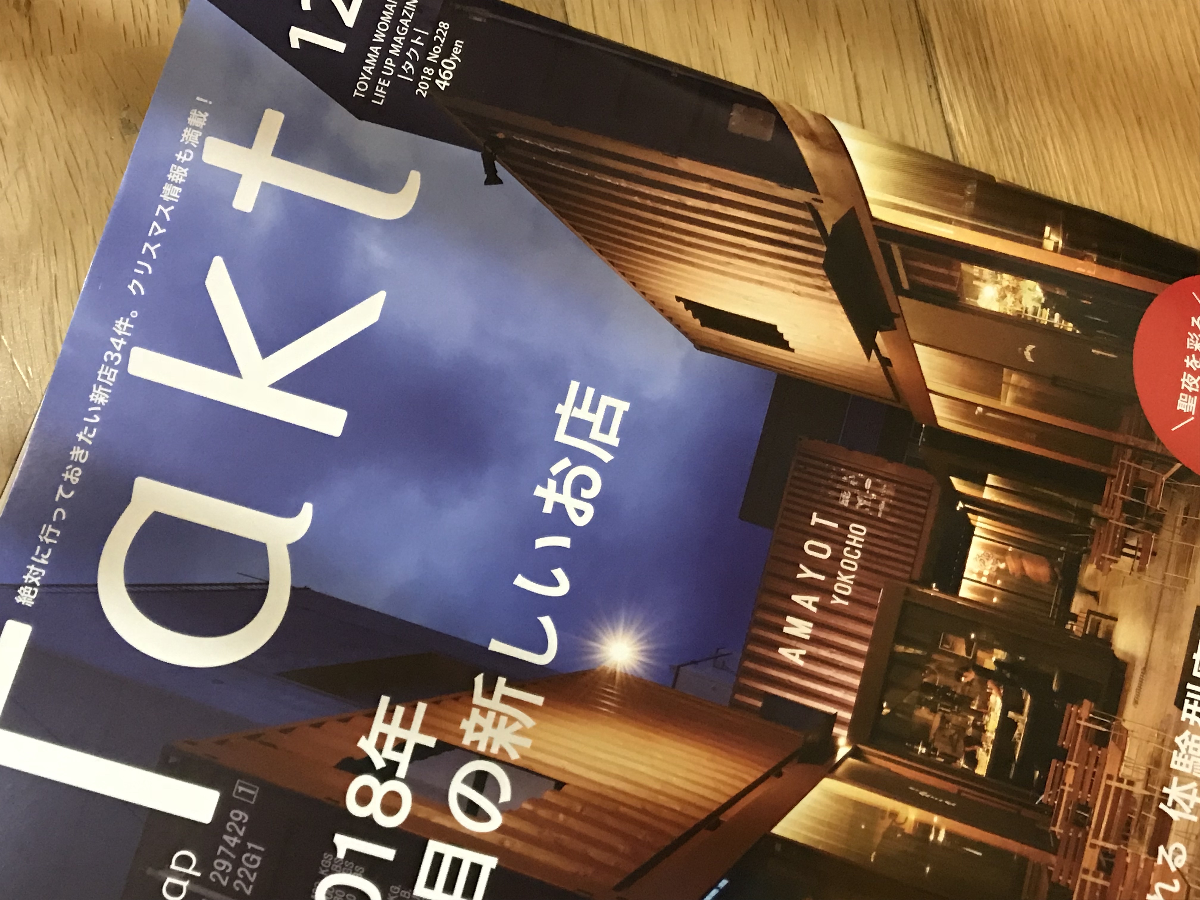 2018年11月09日(金) Tactの取材(今年から変わる配偶者控除等について) 11/10発売のTaktの取材を受けました。今年から大幅に変わる配偶者(特別)控除についてお話しました。「暮らしノート」というコーナー見開き2ページに掲載されています。